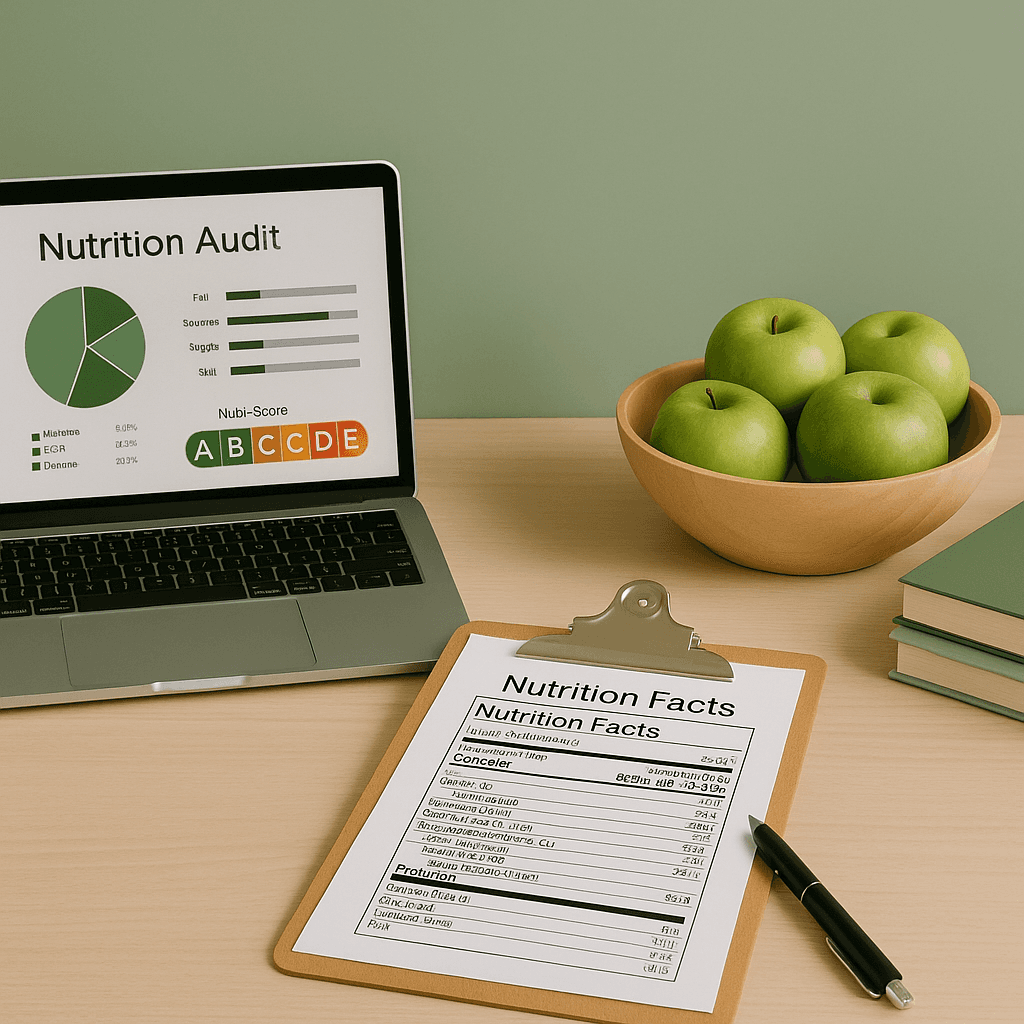 Un diagnostic complet de vos produits pour évaluer leur Nutri-Score, valeurs nutritionnelles et conformité réglementaire.